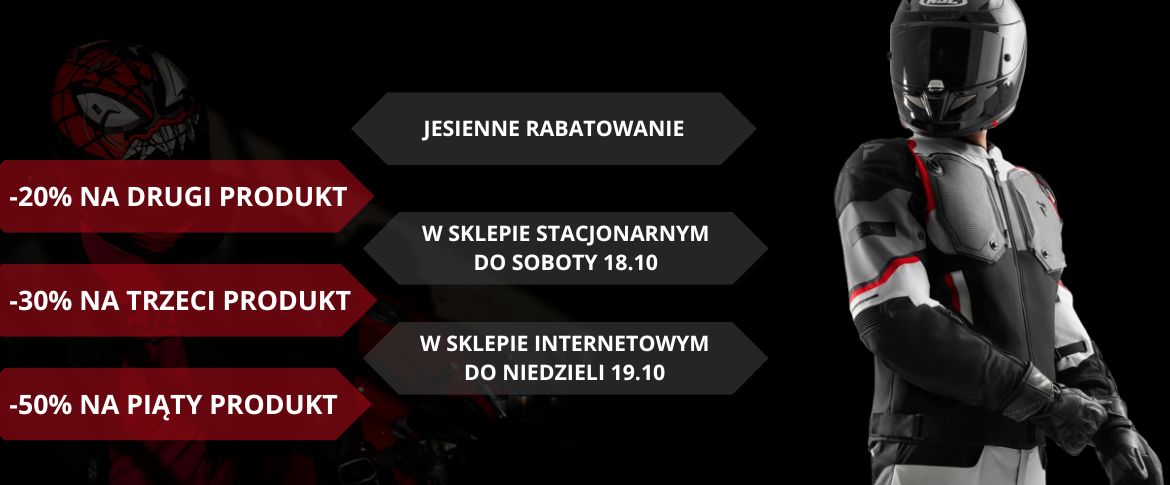 Aby strój motocyklisty był wygodny i bezpieczny idealnie byłoby go przymierzyć w stacjonarnym sklepie motocyklowym. Zapraszamy do jednego z naszych 2 stacjonarnych sklepów motocyklowych. Na miejscu czekają na Ciebie nasi Konsultanci, których celem jest pomoc w doborze odpowiedniego ubioru dla Ciebie. Jeśli jednak nie możesz wpaść do nas aby przymierzyć ubrania to możesz śmiało kupić je także w naszym sklepie internetowym. Pamiętaj, że jeśli kask jest za mały lub ubranie nie pasuje - masz 14 dni na zwrot lub wymianę. Gdy dokonasz zakupu za ponad 1000 zł zamówione produkty dostarczymy za darmo. Więcej szczegółów na temat dostawy i płatności znajdziesz tutaj. Motoklan to nie tylko internetowy sklep motocyklowy, to także sieć sklepów stacjonarnych w takich miastach jak: Wrocław. Dokładny adres naszych salonów znajdziesz TUTAJ. Nasi konsultanci doradzą Ci w temacie doboru odpowiedniego stroju czy akcesoriów motocyklowych. W naszej ofercie znajdziesz szeroką gamę kasków motocyklowych: integralnych, otwartych, szczękowych, modułowych. Posiadamy także szeroką gamę odzieży motocyklowej: kurtek skórzanych, tekstylnych damskich i męskich, rękawic turystycznych i sportowych. W naszej ofercie znajdziesz także szeroki wybór obuwia motocyklowego renomowanych światowych marek takich jak Alpinestars, Spidi, Sidi, Daytona, Revit, Rebelhorn.