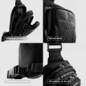 Poręczna, niewielka torba na biodro. Pomieści najważniejsze akcesoria i dokumenty. Odporny na deszcz poliester 1680d. Dwie niezależne kieszenie, wbudowane wyjście na słuchawki