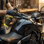 SPRYSKAJ 🔫 – Nanieś produkt bezpośrednio na zakurzoną powierzchnię motocykla.